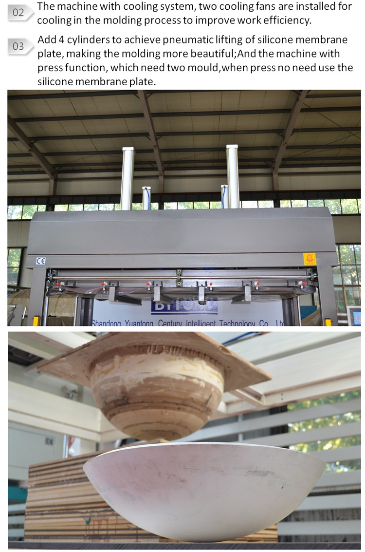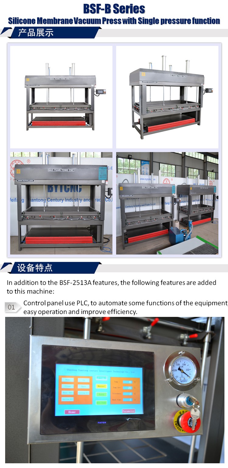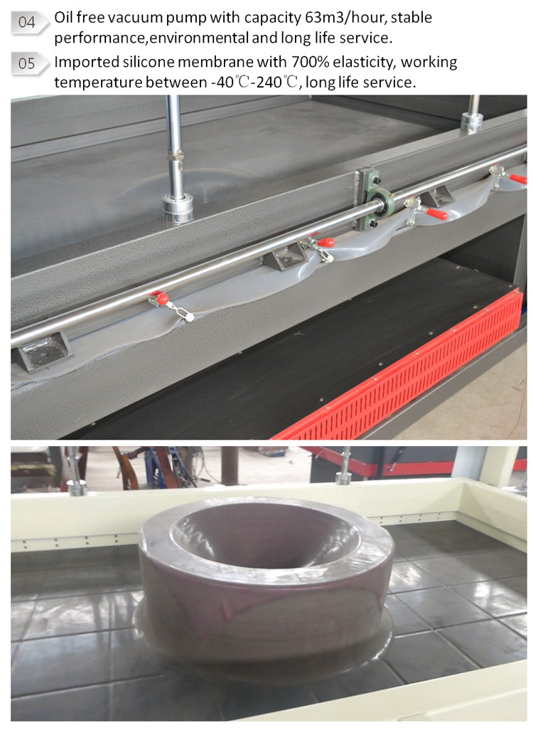 1.采用60m3/h旋片式真空泵,性能穩(wěn)定,環(huán)保,長時間工作穩(wěn)定。真空力作到工件上是9t/m2;