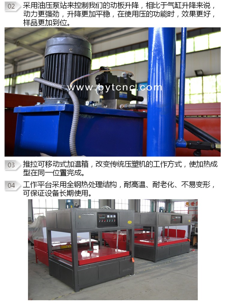 3.可實現(xiàn)材料加熱軟化,吸塑成型一氣呵成,無需將材料換位操作的工藝,從而降低了人工成本;